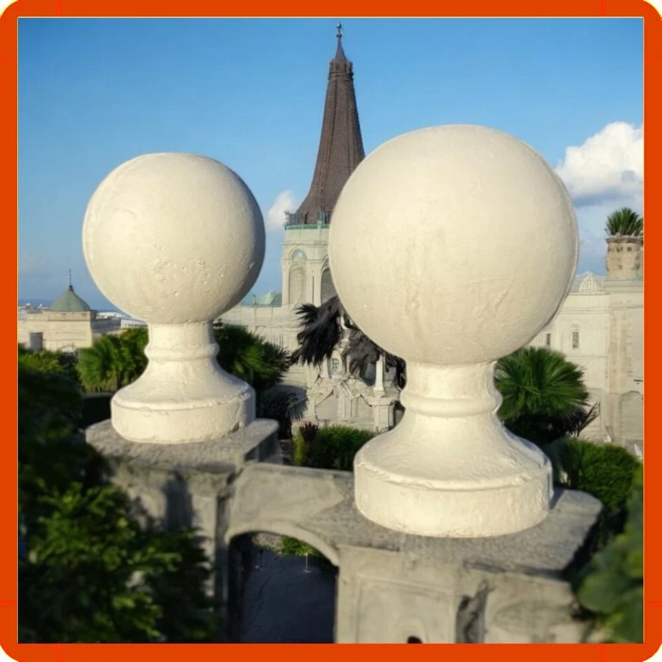 Coppia di sfere in Cemento e Polvere Di Marmo terminale per colonna. Perfetto come decorazione per il giardino aggiungerà valore visivo al tuo giardino o colonna. Realizzati a mano, ogni prodotto è leggermente diverso e ognuno è unico. Duraturo nel tempo, perfetto per essere posizionato all’esterno in ogni stagione.